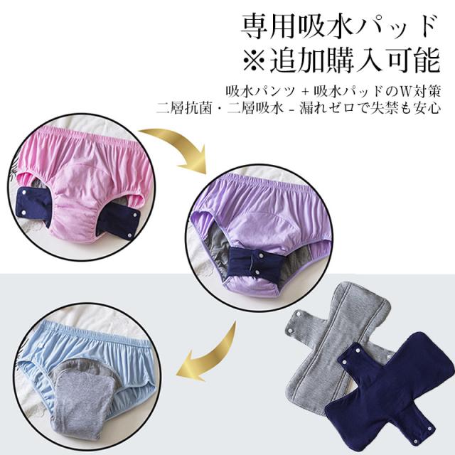 ・吸水パッド付きで、たっぷり漏れもチョイ漏れも安心してカバー。(購入可能)