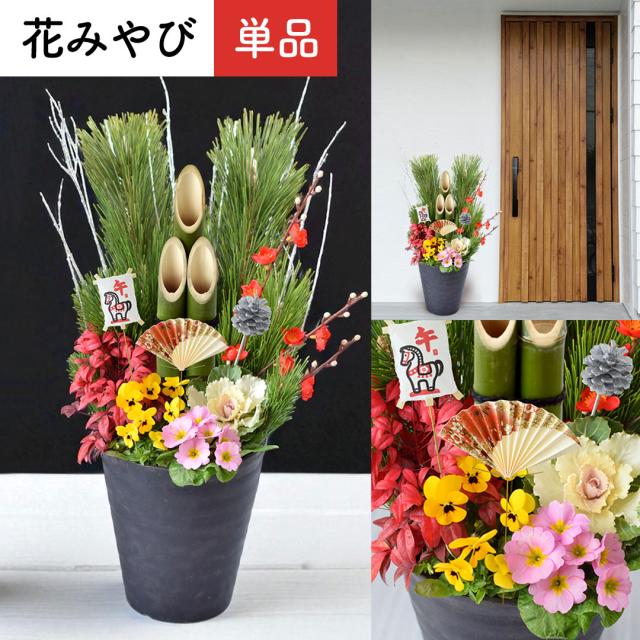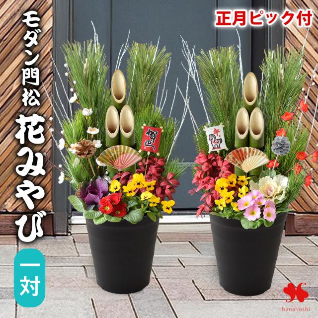 正月 年内お届け 門松 玄関 お正月 迎春 モダン門松 「 花みやび ( 単品 )」 正月飾り お正月飾り 玄関用 花 お年賀 ギフト正月 寄せ植え 仕立て 正月花 お正月 お正月後は寄せ植えに変身 迎春 モダン 縁起物 お年賀 ギフト 花飾り おしゃれ 午年 マンション 松 2026 送料無料