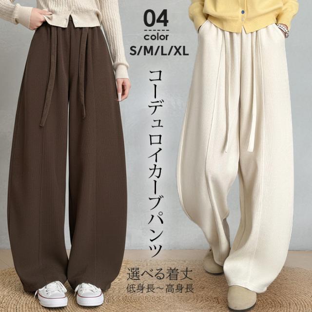 MAX1,500円OFFクーポン!パンツ コーデュロイ カーブパンツ レディース 裏起毛 選べるタイプ ワイドパンツ 美脚 体型カバー あったか素材 ボトムス 低身長 高身長対応 選べる丈 秋冬 ゆったり 大人 【 選べる丈コーデュロイカーブパンツ】 ダークエンジェル ●即納●