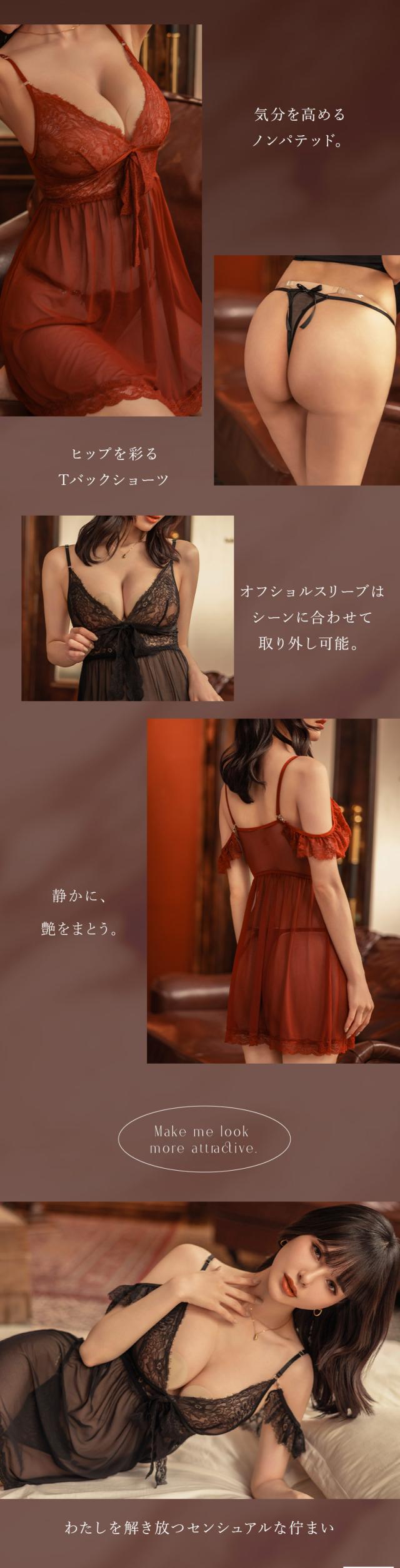 ※モニター環境により、色味が実際の商品と若干異なる場合がございます。 ※記載のセット内容のみの販売となり小物等は含まれません。 ※お洗濯の際は、洗濯表示(ケアラベル)の取扱い絵表示と注意事項をご確認ください。 ※常に商品改良を行っており、ご購入いただくタイミングにより仕様や着用感が若干異なる場合がございます。 a174 2WAY セクシーランジェリー ノンパテッド ベビードール ショーツセット 紐 Tバック 透け 下着 セクシー レース シースルー 袖付き ブラック 黒 レッド 赤 ワイン ボルドー クリスマス プレゼント バレンタイン ギフト ランジェリー ベビードール babydoll セット ショーツセット 上下セット 透け感 |