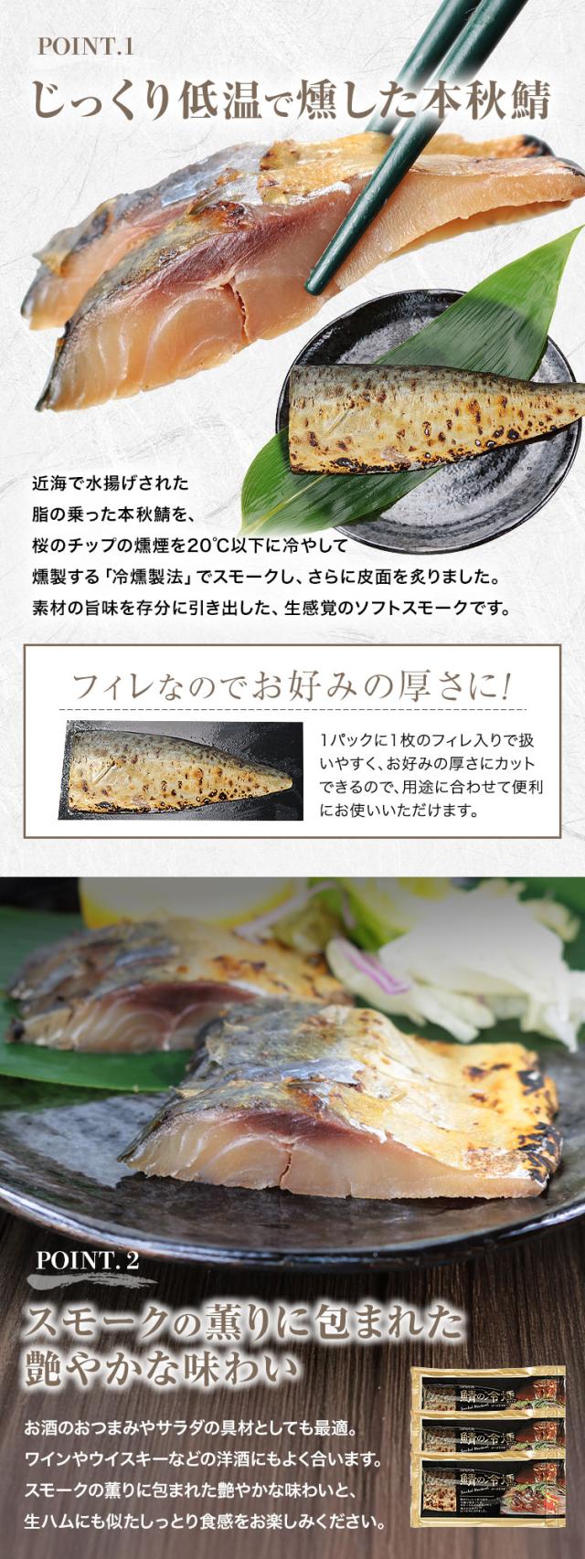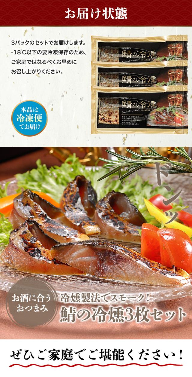 鯖の冷燻 3枚パック 燻製 スモーク さば サバ おつまみ 本秋鯖 フィレ 冷凍