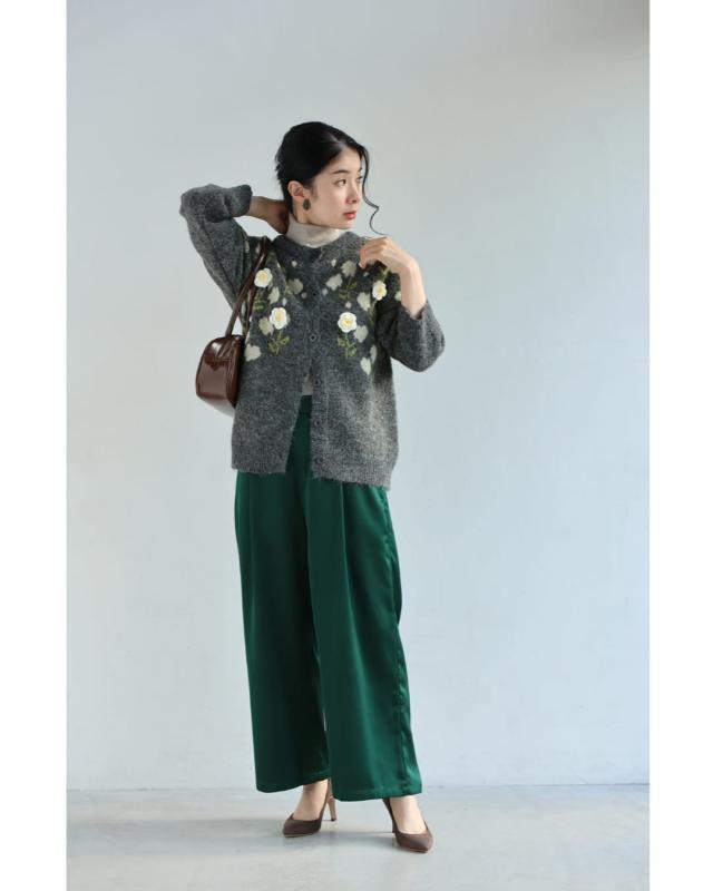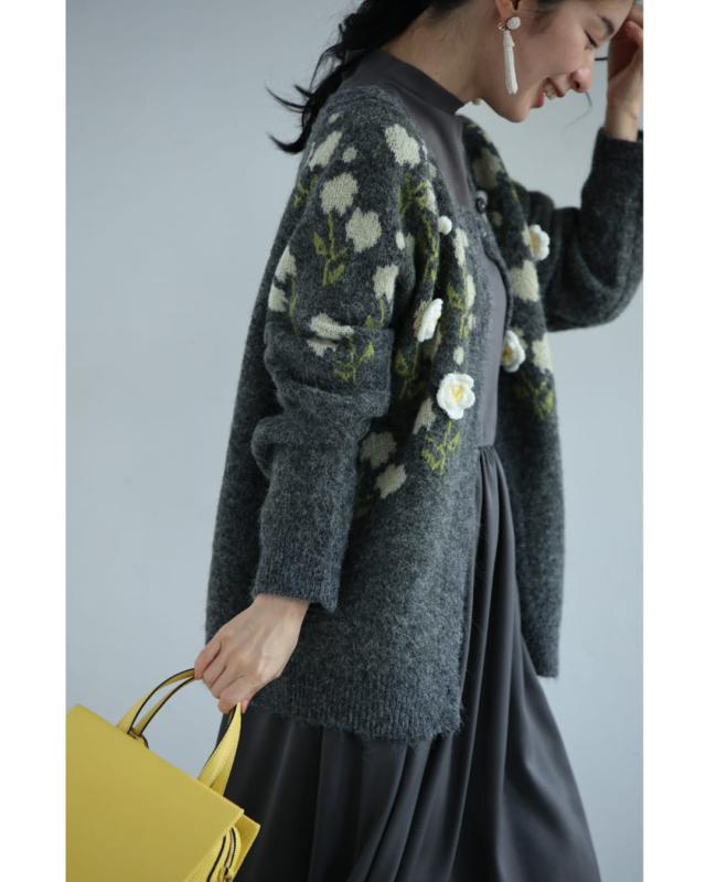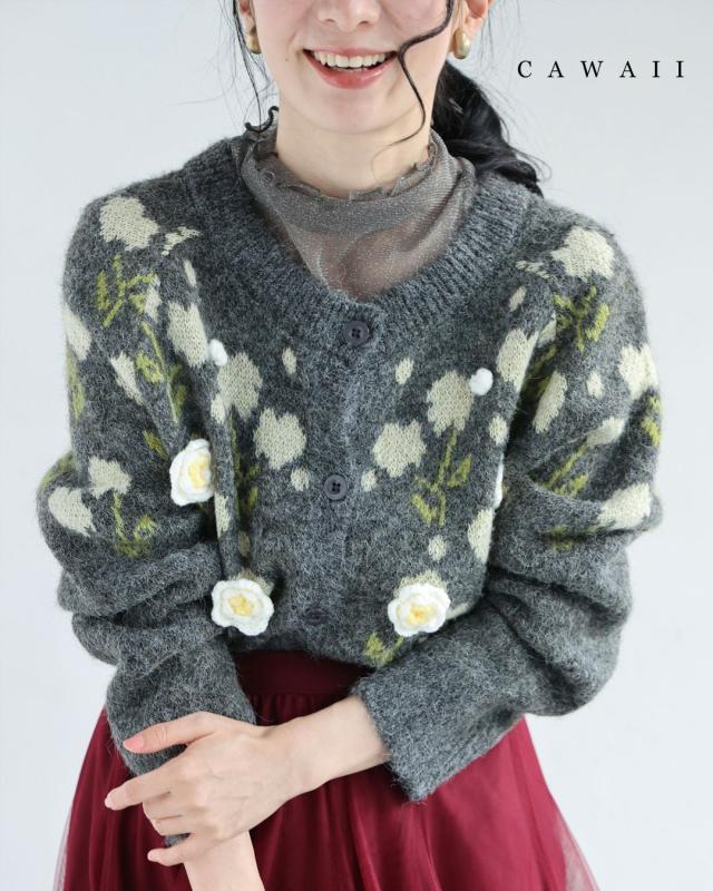w61600ps 新作 新着 再入荷 CAWAII FRENCHPAVE フレンチパヴェ エレガント ベーシック カジュアル 可愛い かわいい カワイイ おしゃれ オシャレ お洒落 個性 個性的 定番 ベーシック 大人かわいい 大人可愛い 上品 女性らしい デザイン スタンダード ナチュラル きれいめ キレイめ シンプル フェミニン レディース レディースファッション 大人 ママ ミセス 30代 40代 50代 60代 浮き立つ花コサージュの起毛ニットカーディガン 羽織り 前ボタン 長袖 S M L XL 3L ワンサイズ フリー 小さめ 小さい 低身長 痩せ ほっそり 小柄 細身 標準サイズ 大きめシルエット 大きい ビッグシルエット ゆったり F サイズ自由 厚手 あったかい あたたかい 暖かい ぬくい 春 秋 冬 秋服 秋物 冬服 冬物 伸縮 グレー 普段着 日常使い ヘビロテ 毎日着れる デイリー使い 仕事 会社 通勤 おでかけ 立体感 お花モチーフ 大人女子