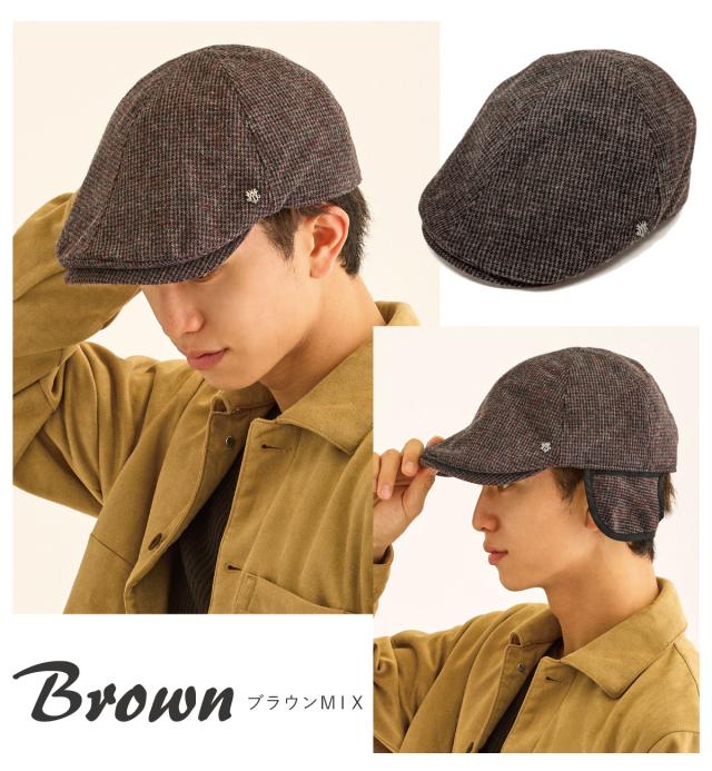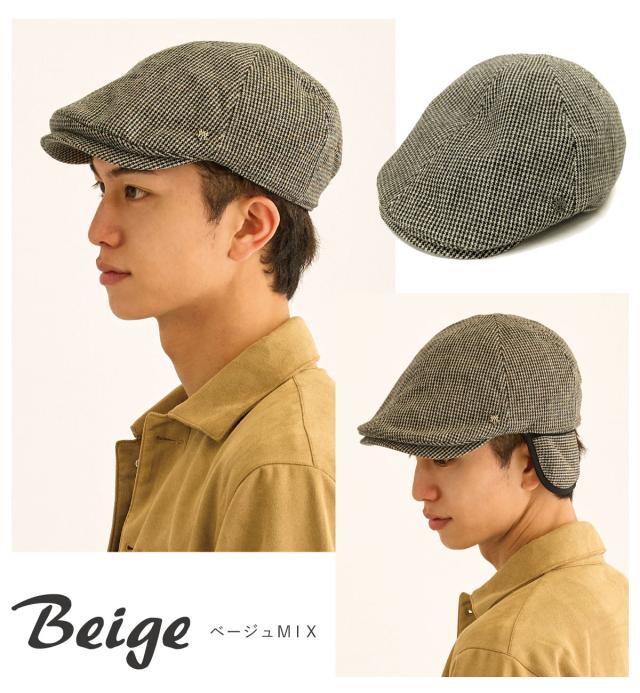 帽子 メンズ 耳あて付き ハンチング 防寒 大きいサイズ 千鳥格子 MIXカラー 耳まであったか 深め フライトキャップ 59cm-63cm MQUM ゴルフ 冬 2way hun-695 ウール混 帽子 レディース 暖かい 防風 作業帽 クラシカル 男女兼用 プレゼント