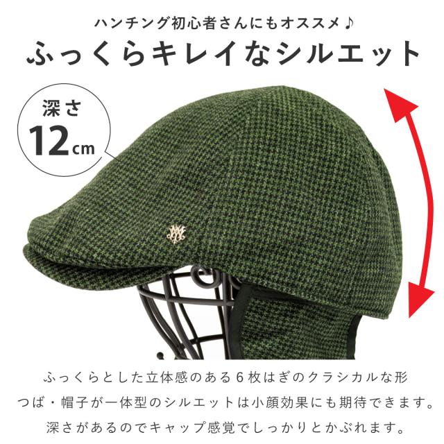 深さのある作りはキャップ感覚でしっかりと被れるから、ハンチング初心者さんも被りやすい帽子です