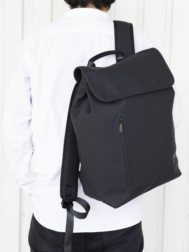 水を弾き耐衝撃性に優れたPU素材の約16Lのリュックサックです。ゴムのように柔らかく弾力のある材質で、開口部は止水ファスナーを使用しています。※水の侵入を完全に防ぐものではありませんのでご注意ください。