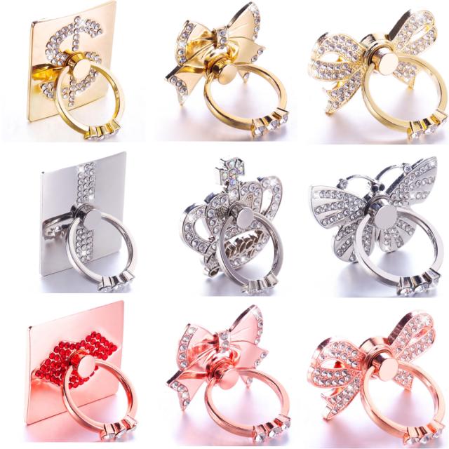 リボン 王冠 ドル リップ 唇 蝶々 スマホリング ラインストーン かわいい お洒落 綺麗 リング スタンド シルバー/ゴールド/ローズゴールド 可愛い スマートフォン 用 リング バンカーリング ホールドリング リングホルダー リングスタンド スマホスタンド ピンク