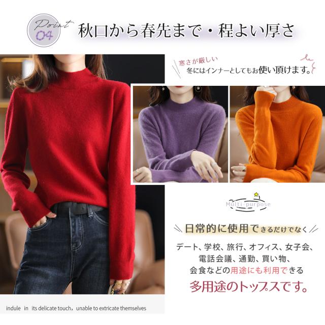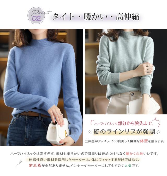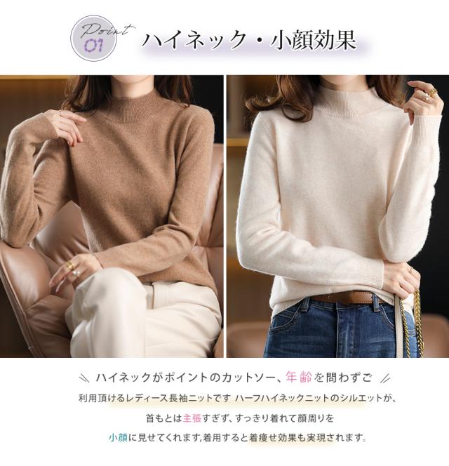 ニットセーター レディース ニットトップス ハイネック 重ねる着便利 着回しやすい 着痩せ 小顔 無地 高伸縮 セーター カットソー ニットソー インナー 秋 冬長袖 カジュアル