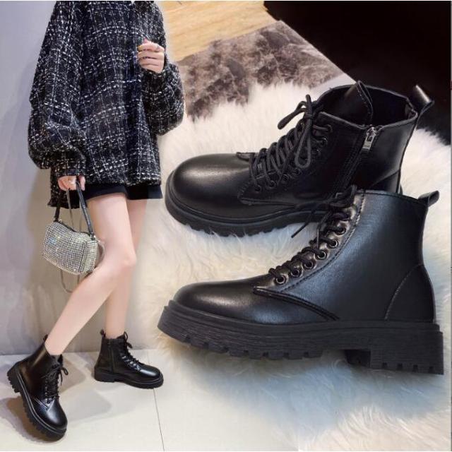 HOTワード: マーチンブーツ ショートブーツ 大きいサイズ レディース ローヒール 編み上げ クラシック 無地 カジュアル 美脚 歩きやすい 秋冬