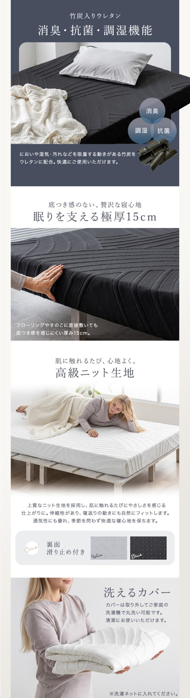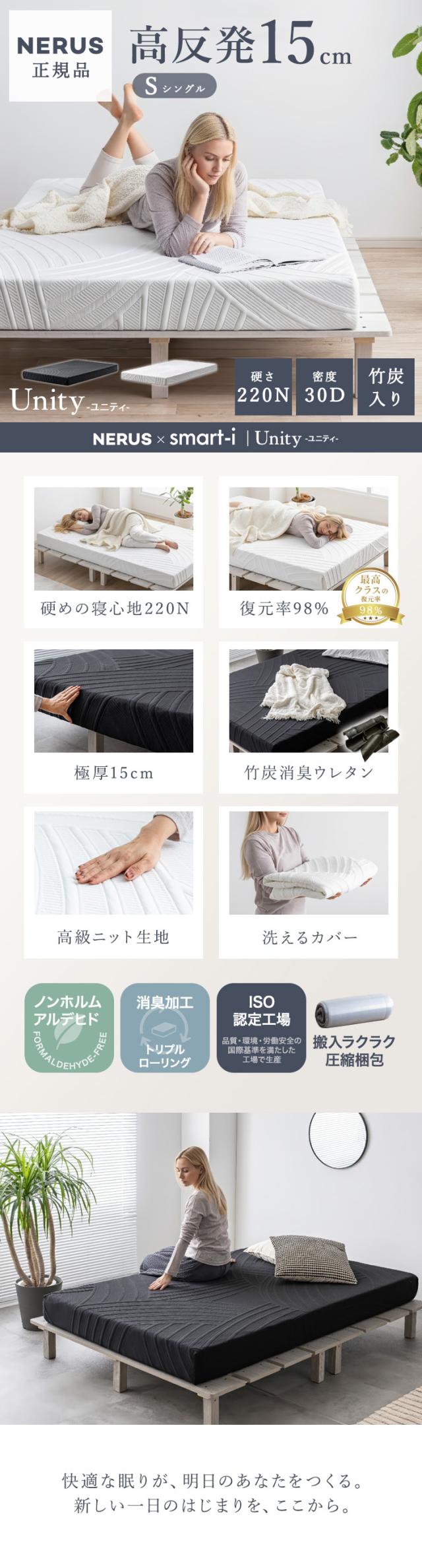 【NERUS 正規品 ネルス】マットレス 高反発 シングルサイズ 高反発マットレス 厚さ15cm Unity(ユニティ) 2色対応 敷布団 敷き布団 おしゃれ ベッドマット ベッドマットレス 硬め 洗える カバー