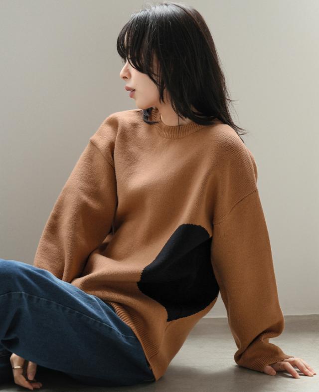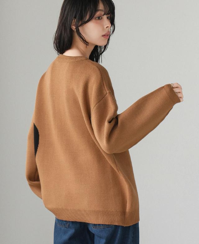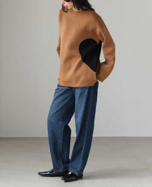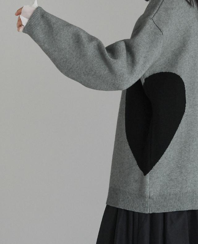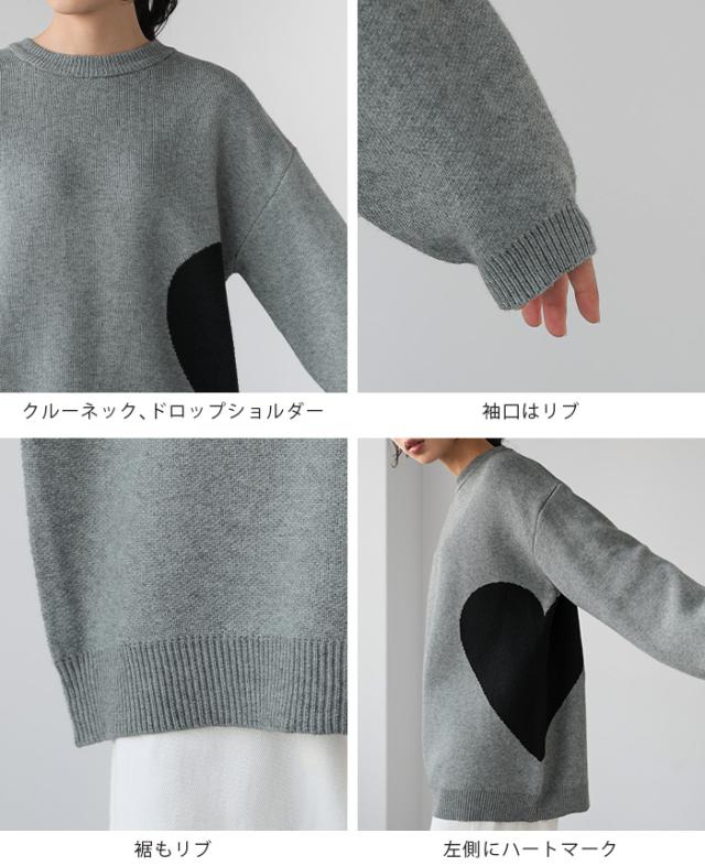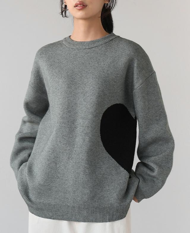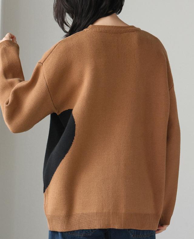 [新作限定P10%×送料無料]BIGハート柄ニット セーター レディース トップス 長袖 クルーネック 丸首 ハート 配色 体型カバー ゆったり 秋冬 秋新作 冬新作【メール便不可】