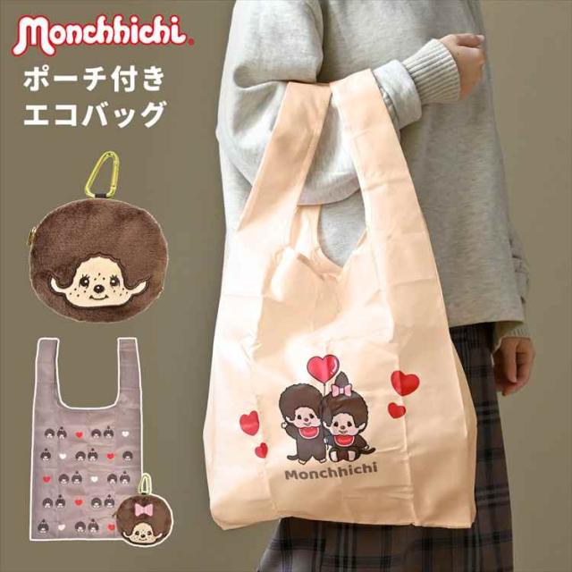 エコバッグ ポーチ付き モンチッチ おしゃれ 折りたたみ 折り畳み コンビニサイズ マチ広 マチ付き まちあり 大容量 懐かし キャラクター かわいい ミニ コンパクト ショッピングバッグ トートバッグ サブバッグ コンビニバッグ レジバッグ 買い物袋 弁当 カラビナ付き 軽い