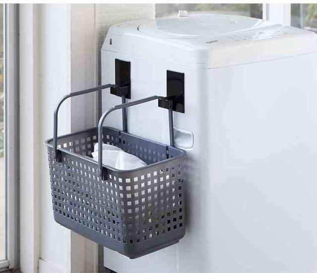 洗濯機横に引っ掛けスペースを作り出せる、towerの マグネットランドリーバスケットホルダー2個組。 収納するものに合わせてホルダーの向きも自由自在。 ランドリーバスケットやハンガー、スプレーボトルなど かさばる洗濯グッズを省スペースに収納できます。