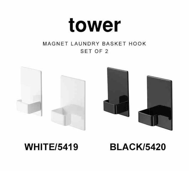 マグネットランドリーバスケットホルダー 2個セット 山崎実業 タワー マグネットフック 収納 2個組 ランドリーバスケット ホルダー フック 磁石 tower 洗濯機 お風呂 キッチン シンプル モノトーン おしゃれ ブラック ホワイト 5419 5420 引っ掛け収納 yamazaki 洗濯かご収納