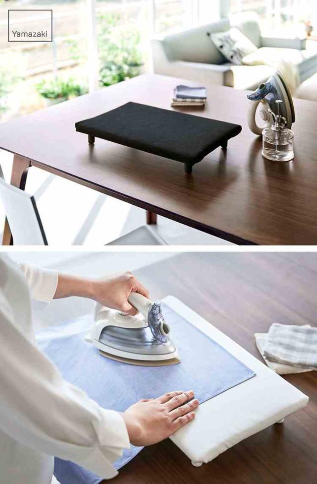 脚付きになり卓上でもスチームアイロンが使える、towerの卓上脚付き 平型アイロン台 S。ちょっとしたシワやハンカチなどの小物のアイロン掛けに便利なコンパクトサイズ。3層構造のパーティクルボード(木材の細片やチップを固めて作った板)を採用したことで蒸気や熱を透過させず、スチームを使用してもテーブルを傷める心配がいりません。脚裏には滑り止めも付いているので安定感もしっかりあります。使用しない時は、ちょっとした隙間に入れ込んで収納できる薄型なのも嬉しいポイントです。