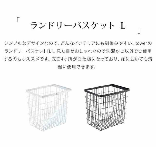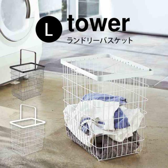 ランドリーバスケット タワー tower l 持ち手付き 山崎実業 おしゃれ 大容量 シンプル スタイリッシュ ランドリー収納 洗濯カゴ ワイヤーバスケット 脱衣カゴ 洗濯物入れ ブラック ホワイト 黒 白 Lサイズ L 大 3162 3163 マルチ収納 スリム 収納 yamazaki ランドリーバッグ