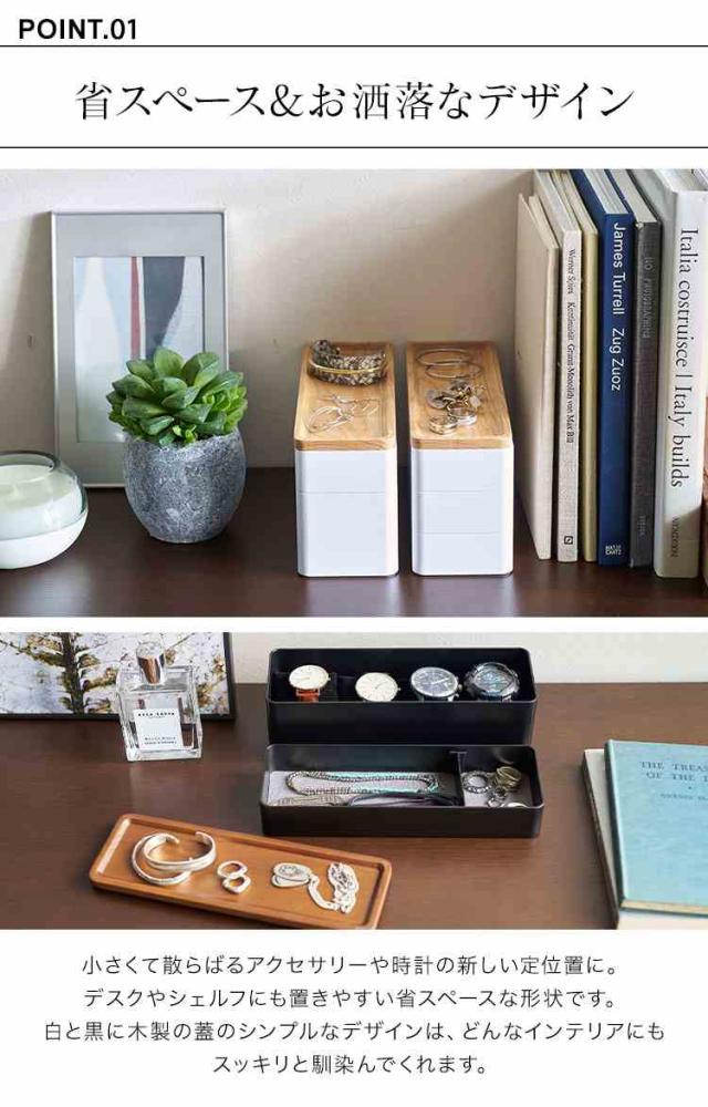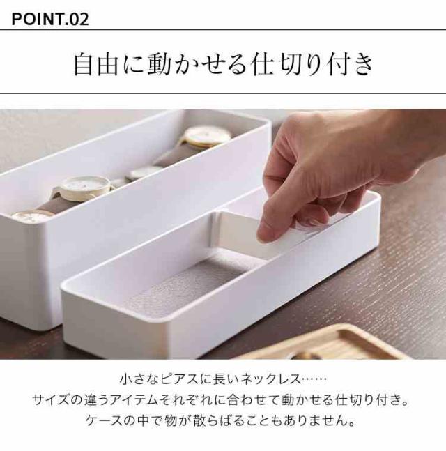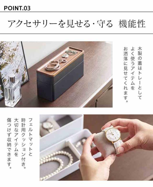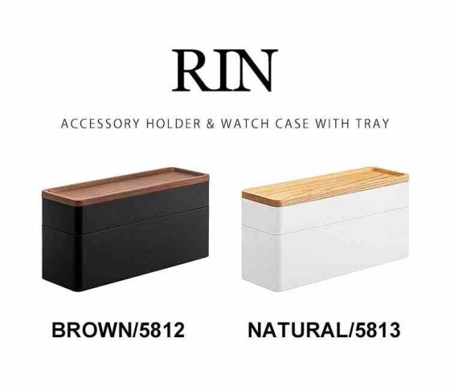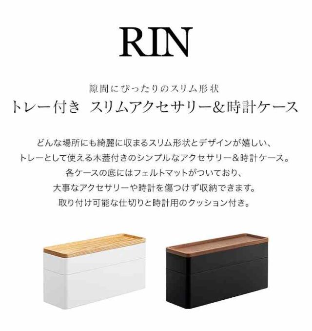 山崎実業 トレー付きスリムアクセサリー&時計ケース リン RIN ブラウン ナチュラル アクセサリートレイ アクセサリー収納 腕時計 ウォッチ 収納雑貨 小物収納 小物入れ 一時置き トレイ ジュエリー ボックス 仕切り付き おしゃれ 木目 木製 天然木 ウッド 北欧 黒 白