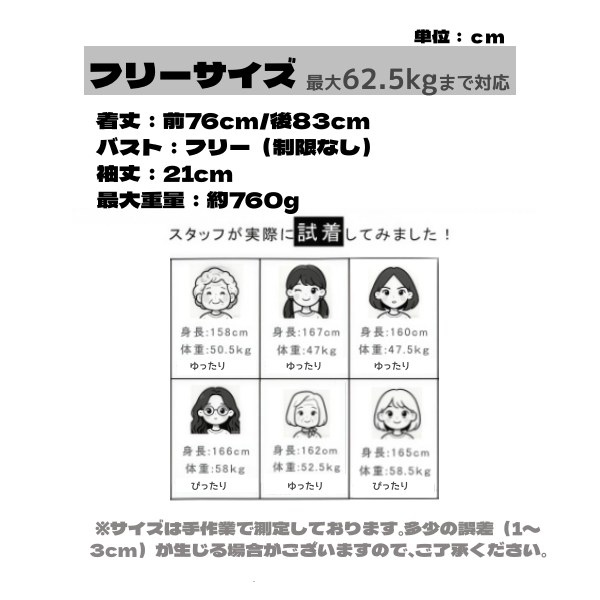 サイズ:フリーサイズ(62.5kg以下の方におすすめ)