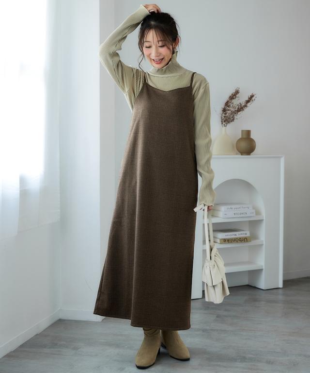 ワンピース ロング マキシ レディース カットソー ジャガード後ギャザーキャミ 冬 ひざ下 | L/LL/3L | ニッセン nissen