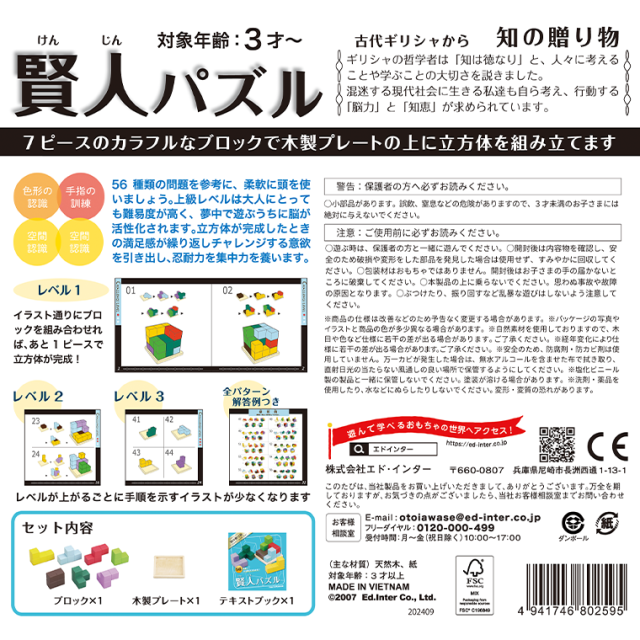 エドインター 賢人パズル エド・インター 家族 脳トレ 指トレ 脳活 パズル おもちゃ 知育玩具 プレゼント 木製 キューブ