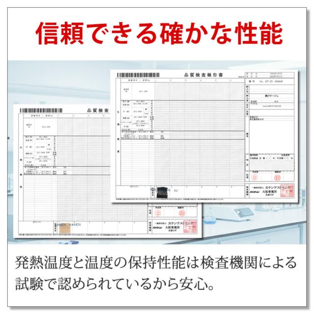 発熱温度や保温性能は検査機関での試験により確認されているので、そのあたたかさはお墨付き。