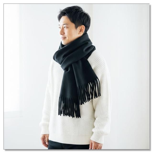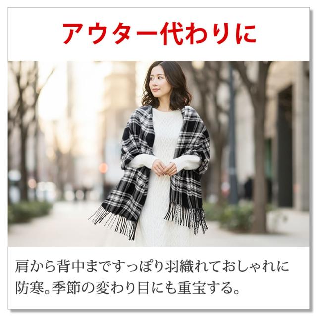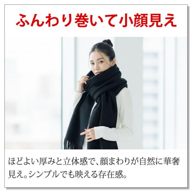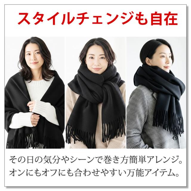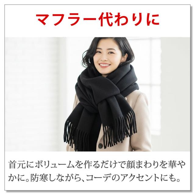 長さ200cmの大判サイズだから、マフラーとしても、ひざ掛けや羽織りとしても自在にアレンジ可能。