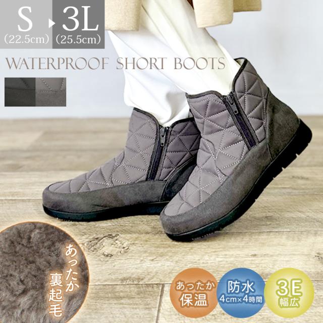 足もとあったか保温仕様!防水設計の幅広3Eショートブーツ。