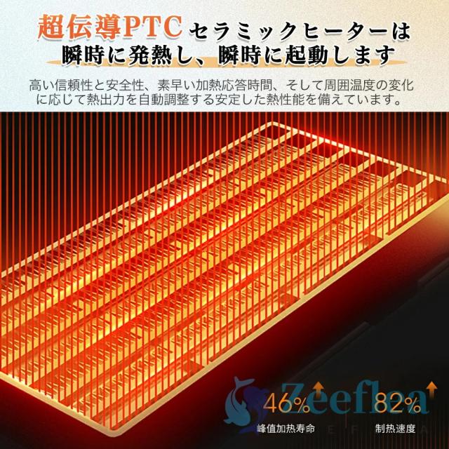 セラミックファンヒーター 暖房 はLED液晶ディスプレイを搭載し、普通品のボタン式や機械式の電気ヒーターと比べると、分りやすいです。高齢者でも簡単に表示と操作ができる。セラミックファンヒーター 暖房器具 は便利な12H時間切タイマー付きで、寝入るまでの間だけ使いたいときや、外出ときに便利!設定した時刻に自動でオン・オフするタイプで、経過時間を指定して自動オン・オフができ、効率的な運転が可能です。また、先進的なPTCセラミック加熱技術とより大きな回転角度(90°)を持つ超高効率ファンにより、あらゆる空間をより速く加熱することができ、熱分布がより均一になる。