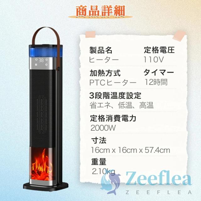 スマートなデジタルディスプレイを搭載し、温度とタイマーが一目でわかります。0〜12時間のスマートタイマーに対応し、正確な暖房制御で省エネと利便性を実現します。3D擬似炎+加湿でより快適な暖かさ、革新的な3D擬似炎デザインが、本物の暖炉のような雰囲気を演出し、寒い冬の日に心地よく華やかな雰囲気を添えます。また、水イオン加湿機能を搭載し、空気の乾燥を防ぎ、より潤いのある暖かさを提供します。