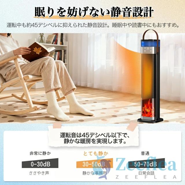 業界トップレベルの静音技術と独特な内部構造で動作音を35dB以内に抑え、ついに無音作動を実現!このセラミックヒーターは雰囲気ライトモードが付き、やさしく灯るLEDムードライトでゆったりとリラックスします。お好みで雰囲気ライトをON/OFFすることができ、いつものお部屋が癒し空間へ早変わります。音や光に非常に敏感な赤ちゃんもペットもぐっすり眠れます。切りタイマーを付き、お出かけや睡眠など時に利用すると、切り忘れとの心配がなく、十分な暖かさを安心に楽しむ。寝室や書斎などで使用する場合は、静音タイプを選ぶのがおすすめ。就寝前・読書・勉強・テレワークなど、集中したいときも快適に使えます。
