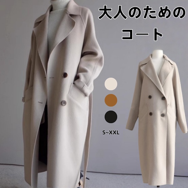 【今だけ!50%OFFクーポン開催中!】ロングコート ダブルフェイス チェスターコート ウールコート レディース 厚手 ゆったり ロングチェスターコート フォーマルコート ブラックフォーマルコート アウター ラップコート 軽い 冬 秋冬 OL 無地