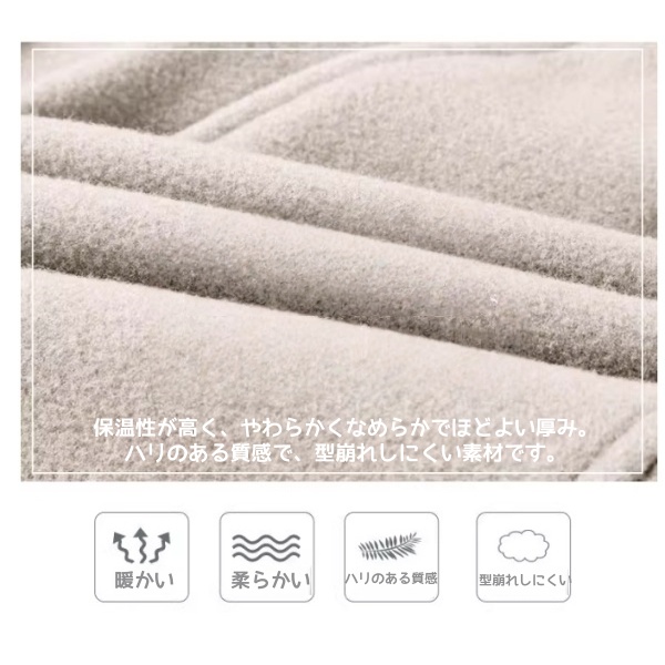●【素材】保温性が高く、やわらかくなめらかでほどよい厚み。ハリのある質感で、型崩れしにくい素材です。