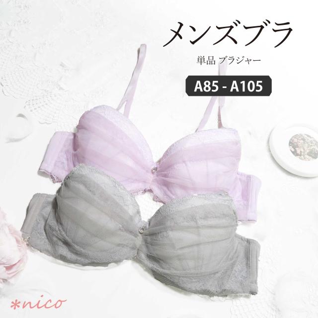 メンズブラジャー チュール 淡めカラー A85-A105 パッド入り (jm-1297-B)[メール便不可]【 男ブラ 男性用ブラ 大きいサイズ メンズ体型用 トランスジェンダー 女装 コスプレ 乙女男子 かわいい】
