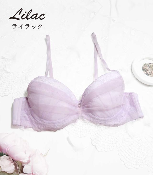 繊細なチュールとレースが重なり合う上品で優雅なデザイン。カップは浅め、ストラップは長めに設計で初めてのメンズブラジャーにもおすすめ◎