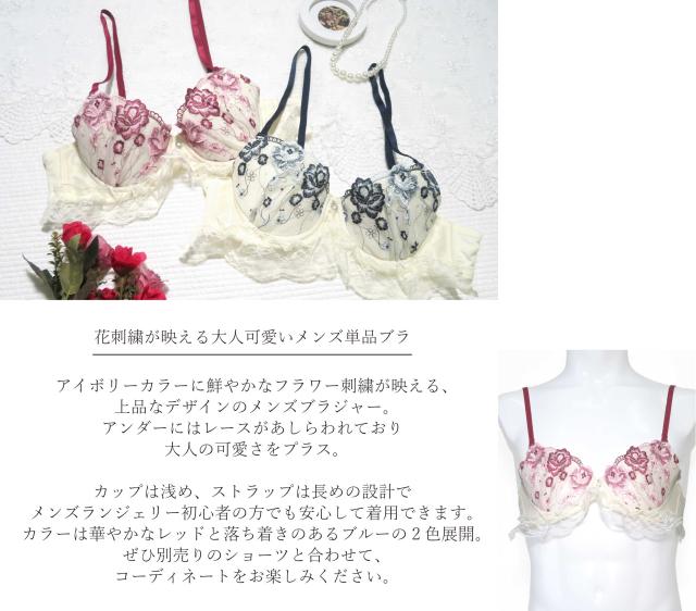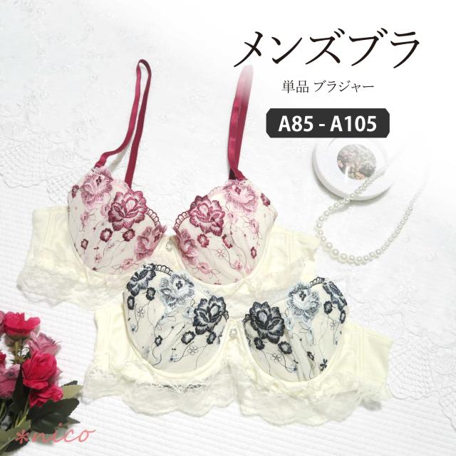 商品名(商品番号):フラワー 刺繍 A85-A105 メンズ体型用 パッド入り 単品 ブラジャー (JM-1300-B)