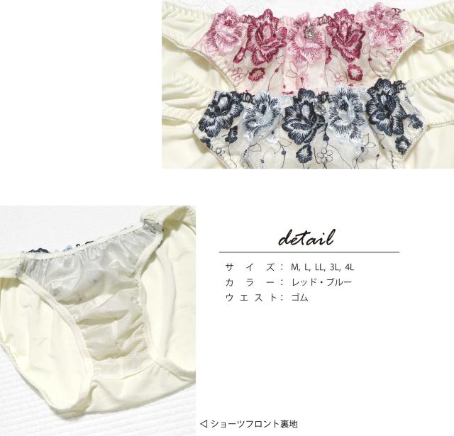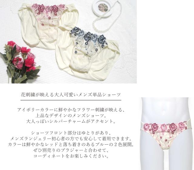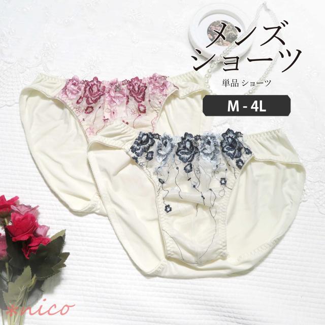 フラワー 刺繍 M-4L メンズ 体型用 単品 ショーツ (JM-1300-S)[★メール便OK]【 M L LL 3L 4L 男性用ショーツ 大きいサイズ 男性用 パンティ 下着 男性用下着 ジェンダーレス かわいい】