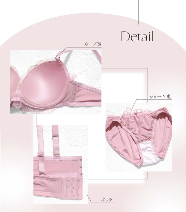 中央に添えられた華奢なリボンも、さりげないアクセントに。 カップは自然なバストラインを叶える「ナチュ盛」シリーズ。