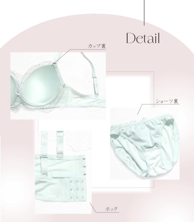 ブラには2種類の異なるレースを使用し、繊細なディテールが可愛さをさらにアップ。