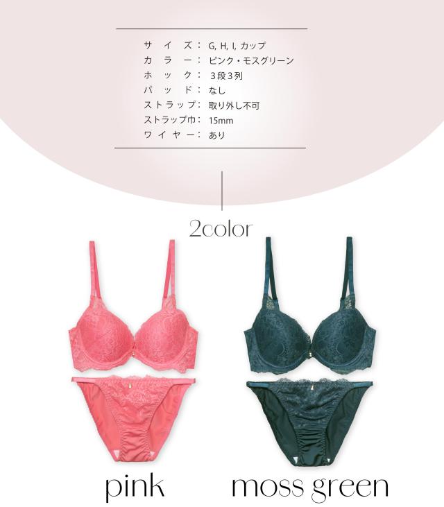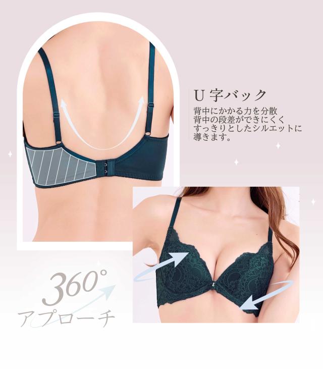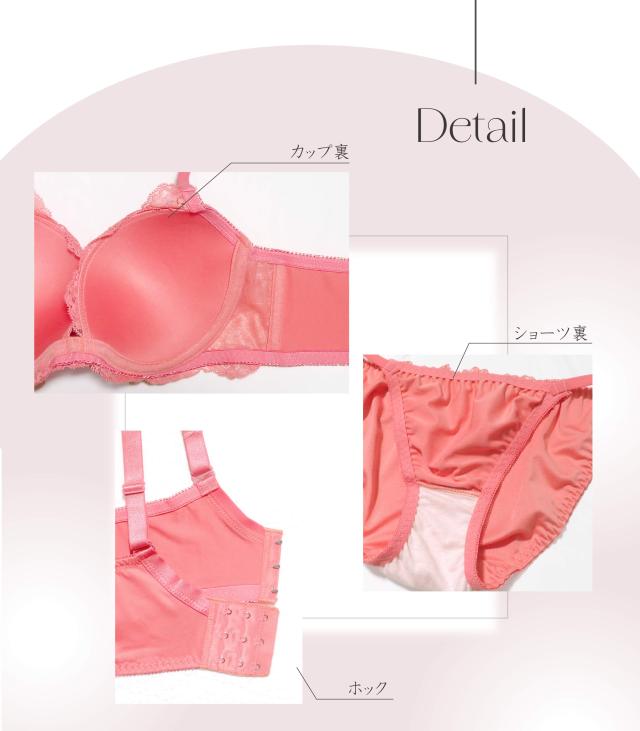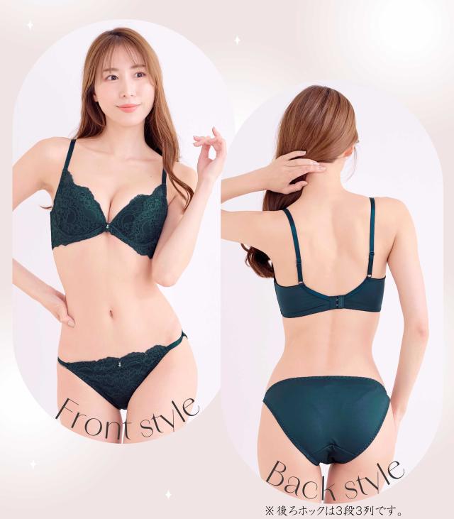 濃密なカラーが際立つ、大人の魅力溢れる脇高ブラセット。総レースカップがセクシーな雰囲気を演出。脇高設計で気になる脇肉をキャッチ。安心フルバックショーツつき。