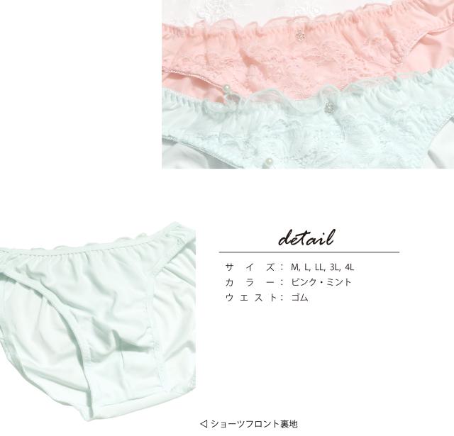 メンズ ショーツ M-4L レース お花 チュール (JM-1291-S)[★メール便OK]【 M L LL 3L 4L 男性用ショーツパンティ 下着 トランスジェンダー ジェンダーレス 乙女男子 かわいい 】