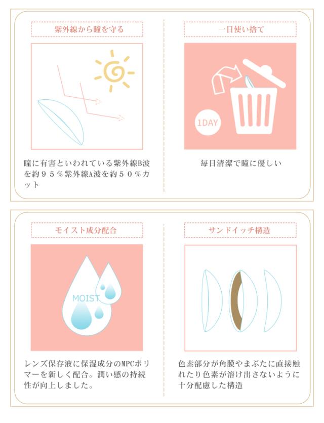 UVカット・サンドイッチ構造:紫外線と色素から瞳を守る安心設計