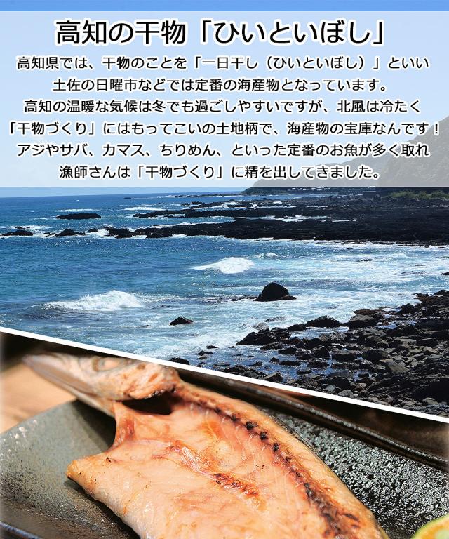 高知県では、干物のことを、「一日干し(ひいといぼし)」といい、土佐の日曜市などでは定番の海産物となっています。