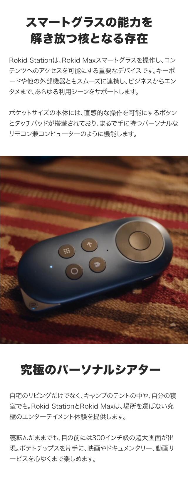 映画鑑賞、動画視聴、ゲーム、リラックスタイムなど、さまざまなシーンで活躍するRokid Station。ARグラスをより自由に、より便利に使いたい方に最適な必須デバイスです。