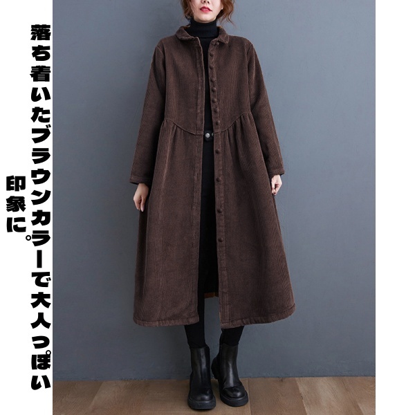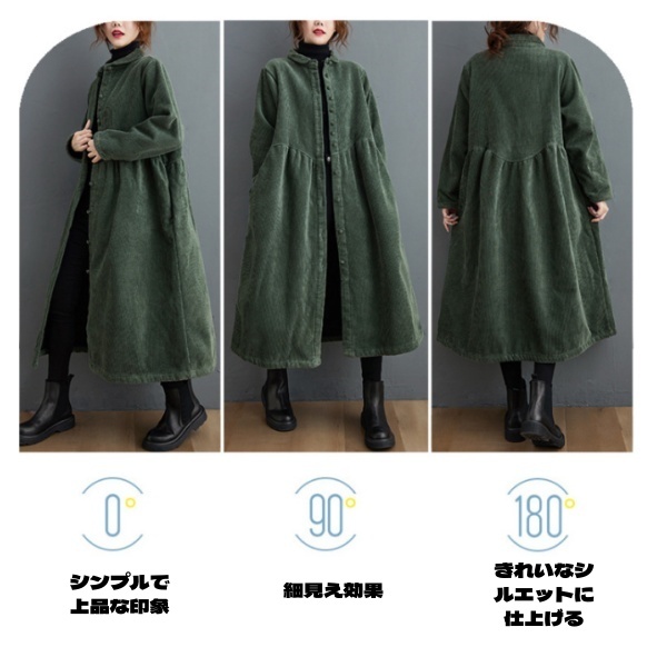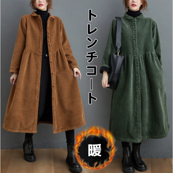 トレンチコート ロングコート レディース ロング丈 アウター コート ワンピース 春秋 コーデュロイ ロング丈 コート 長袖 折り襟 Aライト フレア ロングワンピース トレンチコート マキシ丈 無地 ゆったり 体型カバー カジュアル シンプル きれいめ