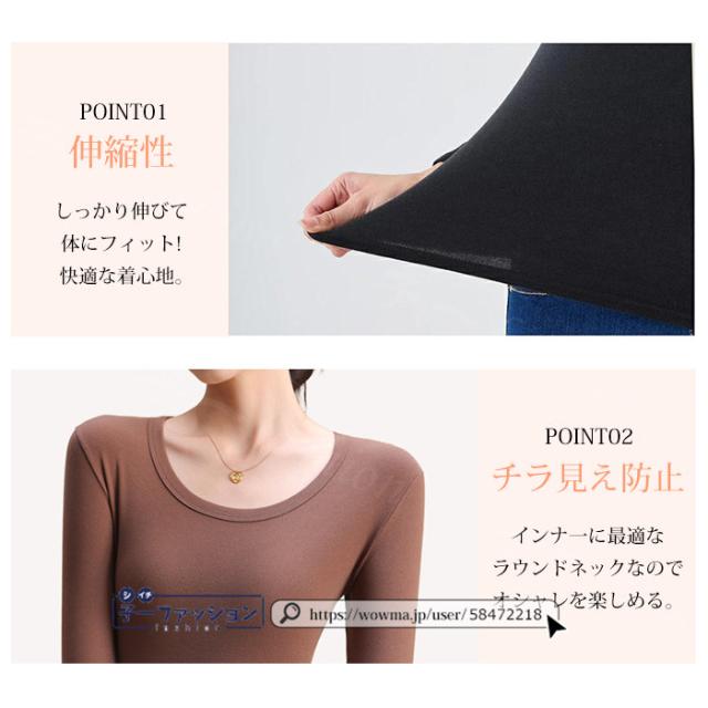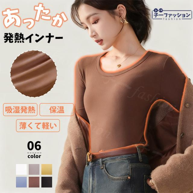 <1点あたり1,190円!2点同時購入&クーポン利用で> カットソー インナー 長袖 暖かい あったか 防寒 発熱インナー 吸湿発熱 レディース 薄手 下着 肌着 保温 ひびきにくい あったかインナー アンダーウェア ストレッチ 秋冬 無地