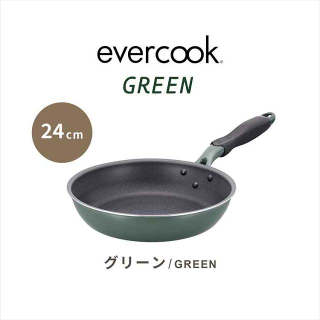 フライパン evercook GREEN エバークック グリーン 24cm IH ガス EGIFPL24GR ドウシシャ DOSHISHA LOW PFAS フッ素 有害物質 PFOS PFOAフリー 安全 軽い 浅型 中型 鍋 おしゃれ かわいい くっつかない こびりつかない 焦げ付かない 長持ち 500日保証 調理 ギフト プレゼント