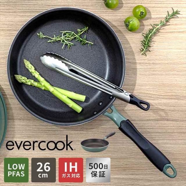 フライパン evercook GREEN エバークック グリーン 26cm IH ガス EGIFPL26GR ドウシシャ DOSHISHA LOW PFAS フッ素 有害物質 PFOS PFOAフリー 安全 軽い 浅型 中型 鍋 おしゃれ かわいい くっつかない こびりつかない 焦げ付かない 長持ち 500日保証 調理 ギフト プレゼント
