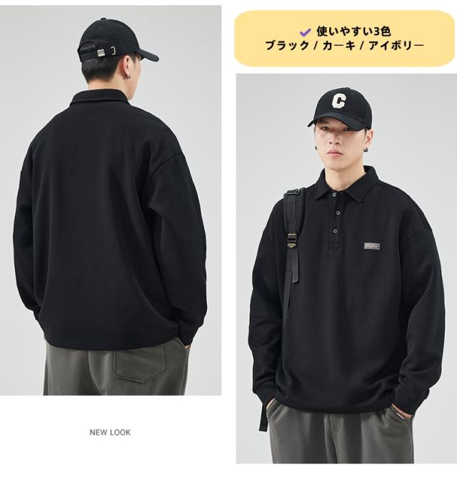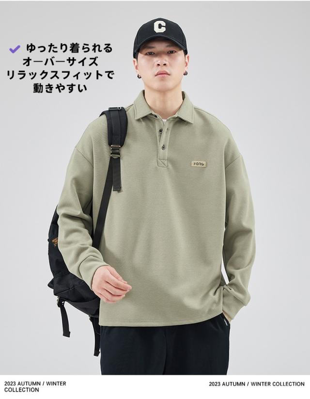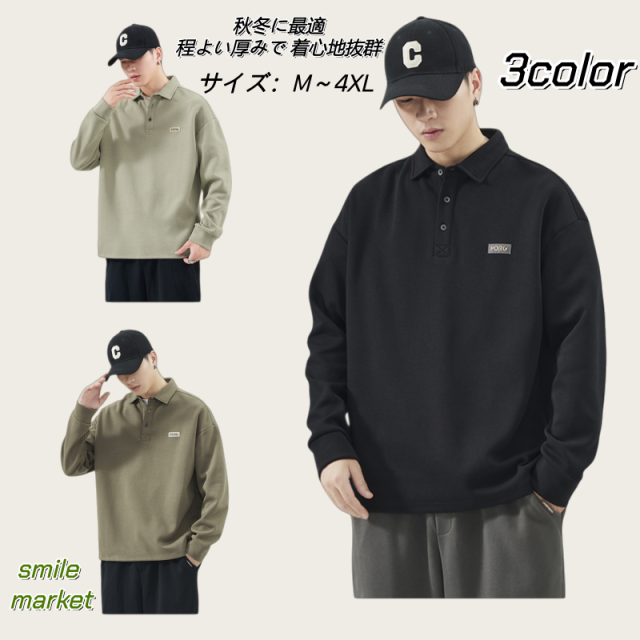 ポロシャツ ポロスウェット メンズ 長袖 トレーナー 秋 冬 大きいサイズ オーバーサイズ ゆったり カジュアル おしゃれ 無地 polo M~4XL