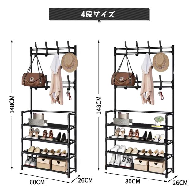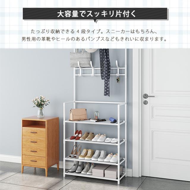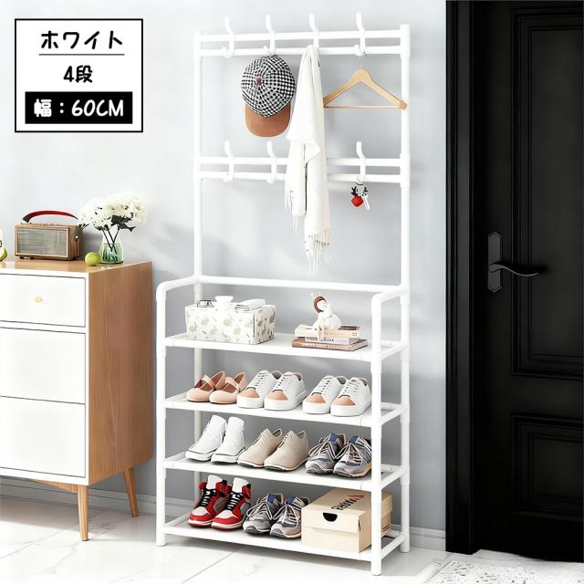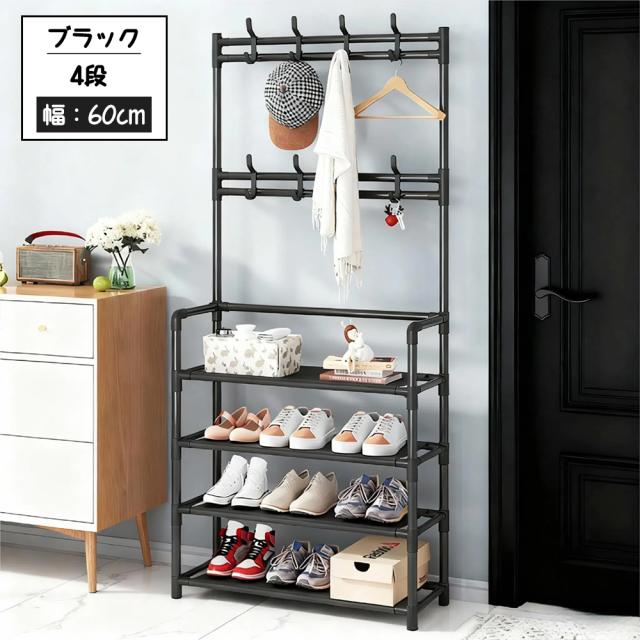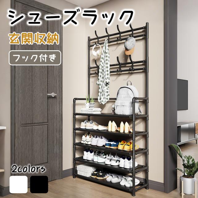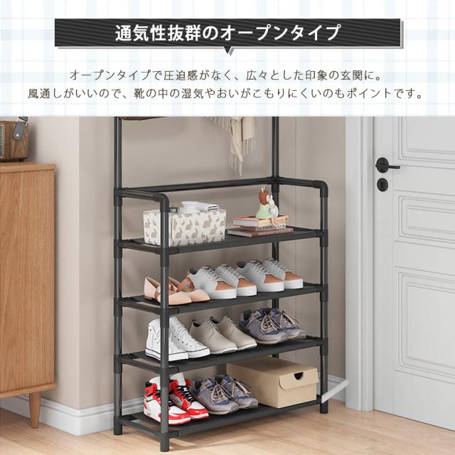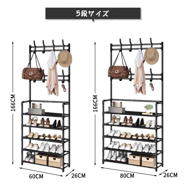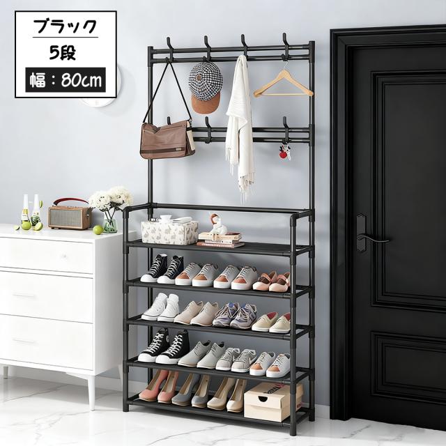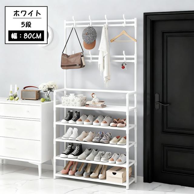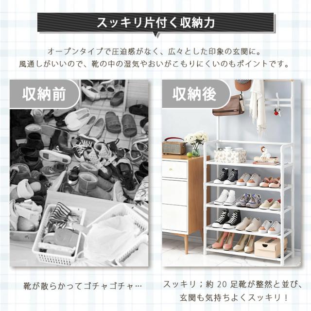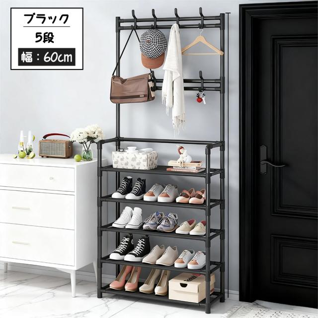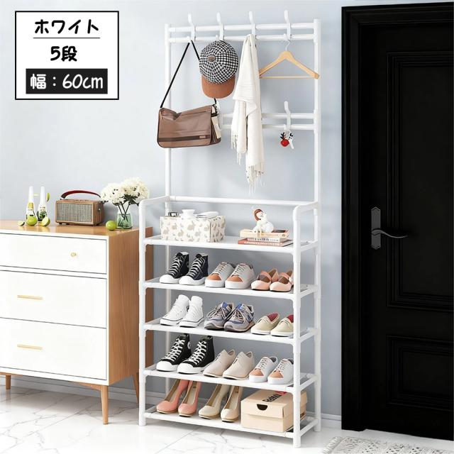 【5段 幅60cm】靴ラック シューズラック 玄関収納ラック 5段 収納 ラック オープンタイプ スリム 省スペース フック付き 玄関 ダイニング 寝室 リビング 収納家具 おしゃれ 簡単 組み立て