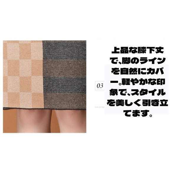 ●【膝下丈のデザイン】膝下丈のスカートで、脚を細く長く見せつつ、身長を低く見せない絶妙なバランスに。
