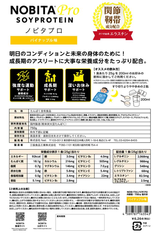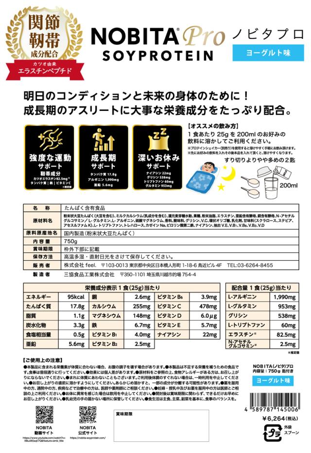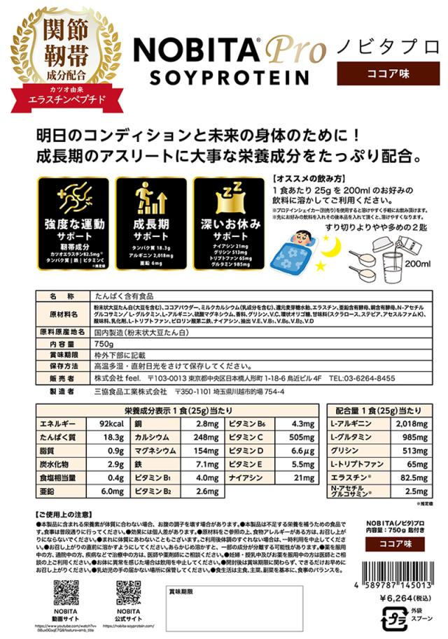 【選べる2点セット】NOBITA PRO ノビタ プロ ソイプロテイン 成長 ケガの回復 予防 内容量 750g 全4フレーバー 【正規販売店】【新品】 タンパク質 ビタミンC エラスチン